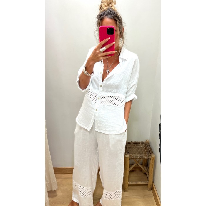 pantalon lino croche