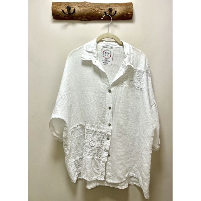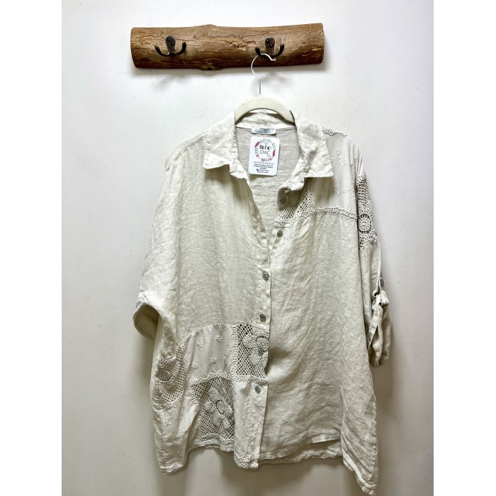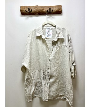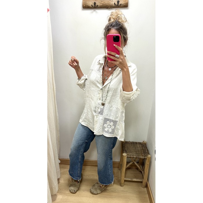 camisa lino fleur croche